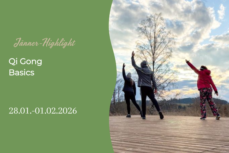 | Qi Gong Basics 28.01.-01.02.2026 Innere Ruhe und Gelassenheit – Mühlviertel 25.03.29.03.2026 Gesunder Schlaf mit Qi Gong 02.08.-09.08.2026 Die fünf Tiere des Shaolin Qi Gong 07.10.-11.10.2026 Innere Ruhe und Gelassenheit – Mühlviertel 21.10.25.10.2026 |