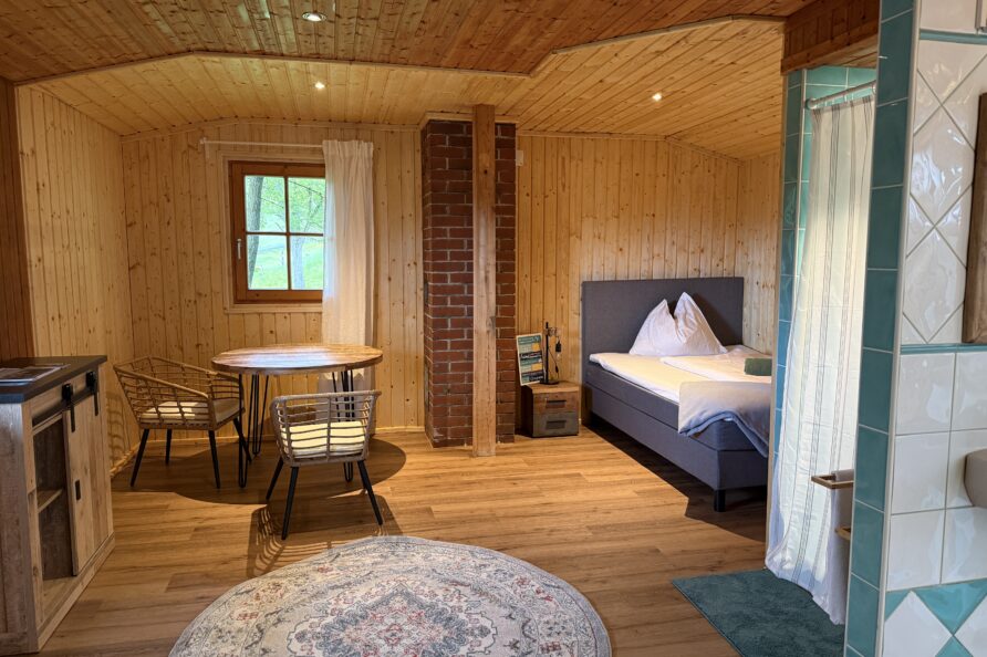 Von April bis Oktober können Sie unser neues Lotus Zimmer, direkt beim Badeteich mit Blick übers Land, genießen.